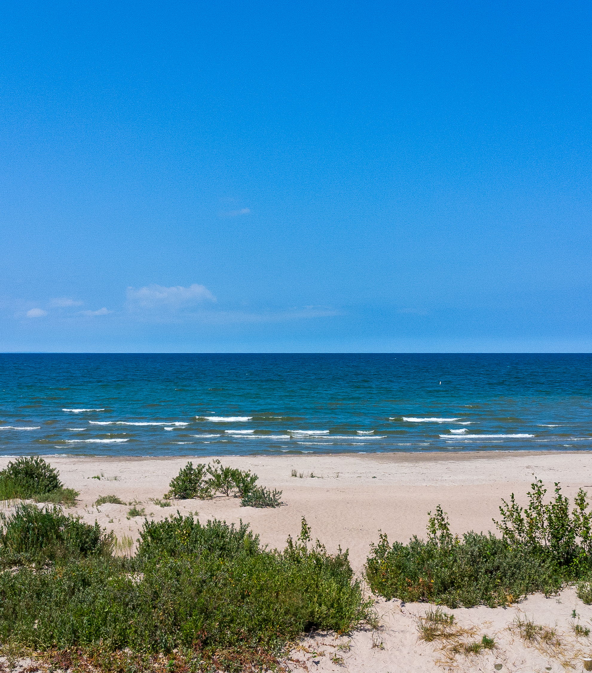 Summer is best spent outdoors here. When you’re not at the beach, the beach comes to you with a sandy backyard. Relax or entertain on the large patio, take in views of the lake and enjoy evenings around the fire pit.